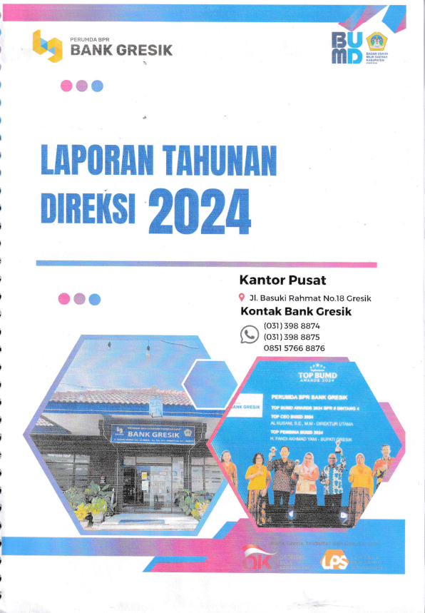 Laporan Tahunan Perumda BPR Bank Gresik disusun sebagai bentuk pertanggungjawaban manajemen kepada pemangku kepentingan serta sebagai pemenuhan kewajiban regulasi sesuai dengan ketentuan Otoritas Jasa Keuangan (OJK). Laporan ini mengacu pada POJK Nomor 29/POJK.04/2016 tentang Laporan Tahunan Emiten atau Perusahaan Publik, serta memperhatikan peraturan lain yang relevan terkait transparansi kondisi keuangan dan pelaporan bagi Bank Perekonomian Rakyat.
